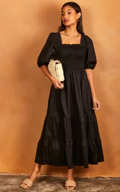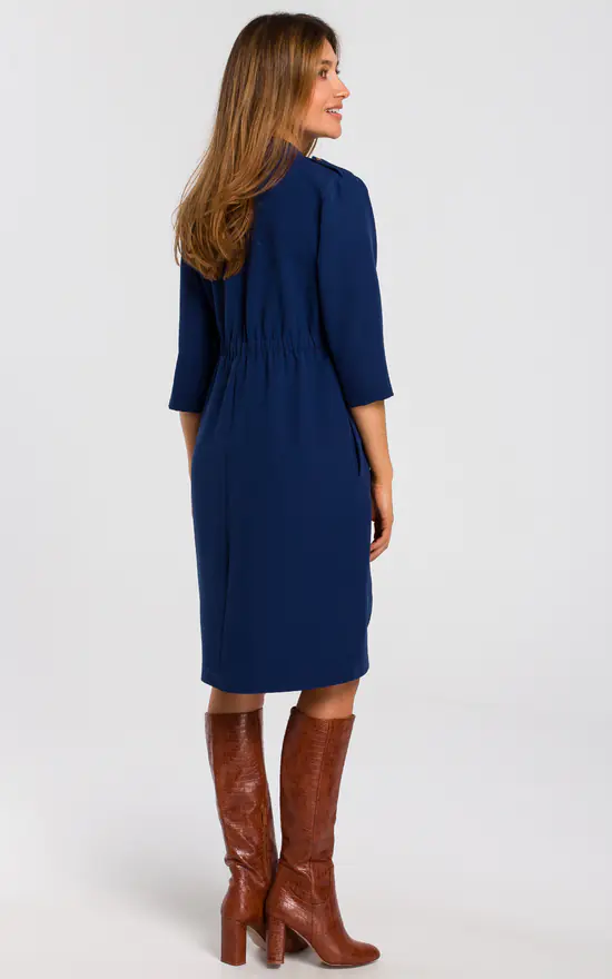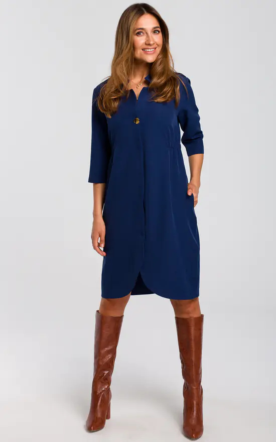 3/4 Sleeve Shirt Dress In Navy Blue