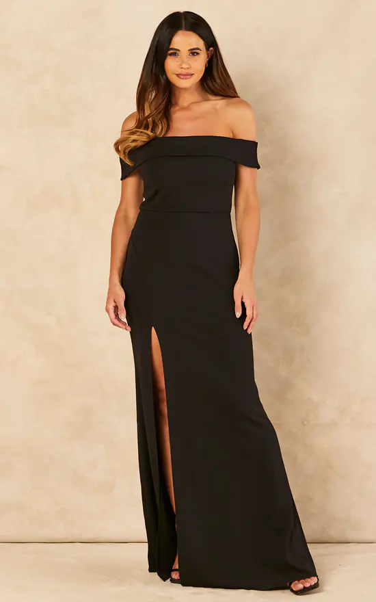 True Violet Black Bandeau Maxi Gown with Thigh Split.