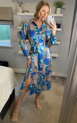 This beautiful abstract printed dress features a v neck and wrap style with silky fabric. An essential collection of your seasonal wardrobe. This wrap dress is suitable for summer/autumn outings, city breaks and beach holidays. Absolute MUST HAVE this season.