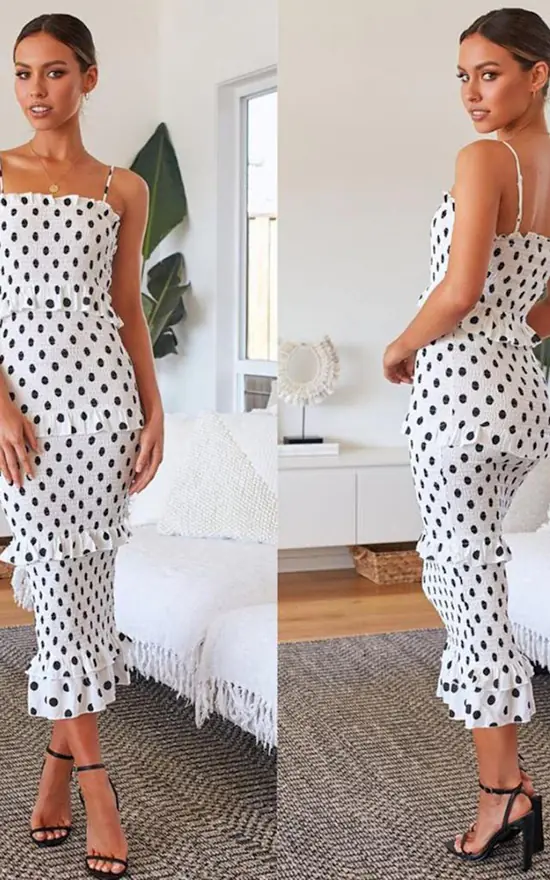 Brunch Club Girls adding the ‘Capri’ white & black polka dot dress to the summer collection.