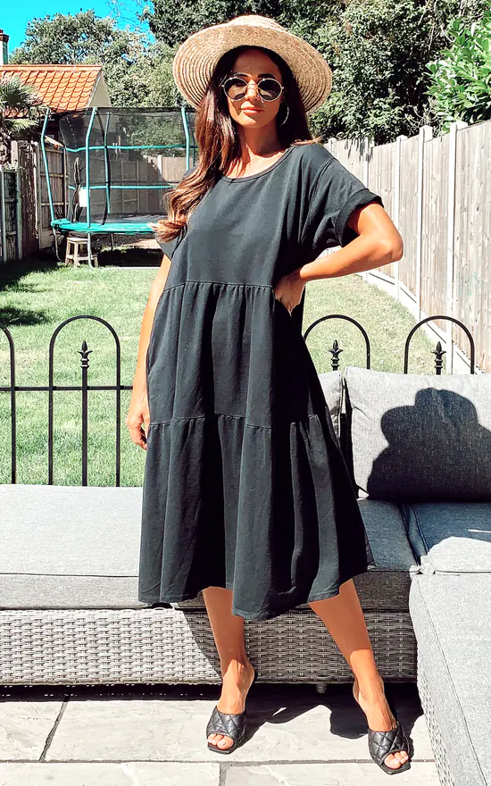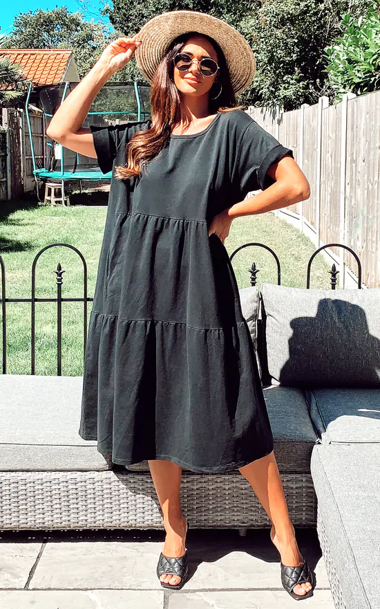 Diana Tiered Midi Smock Dress In Black