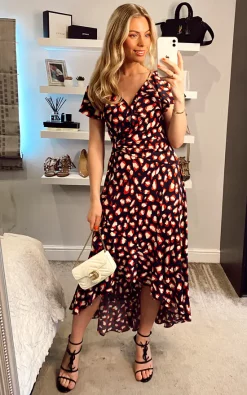 Floaty and fabulous – add this dip hem ruffle dress from Jolie Moi to your wardrobe for a look like no other. Crafted from a soft and fluid jersey fabric, this v-neck dress comes with oversize frilly collar which add interest and cover the shoulders, whilst the ruched waistband creates a form-flattering silhouette. Finished off with a handful of ruffles along the side and dipped hemline. In a refined style that softly drapes and flares out at the hem for added movement, this maxi dress by Jolie Moi is decorated in an on-trend animal print for wild appeal.