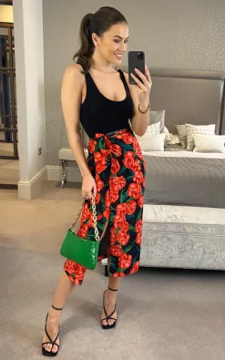 Elegant and flowy, pair this midi skirt with summer sandals or high heels.