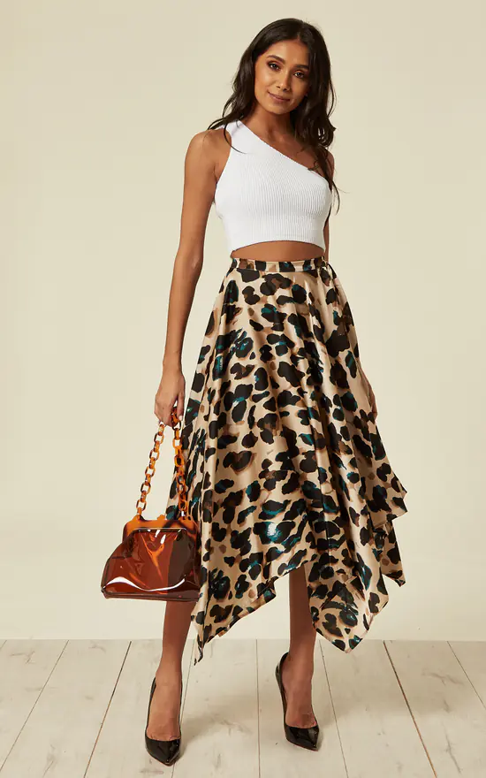Redefine your looks with the chic and floaty fit of this midi skirt, featuring a striking animal print that’s sure to give you a stand out. Perfect for an evening night out or a work to party outfit.