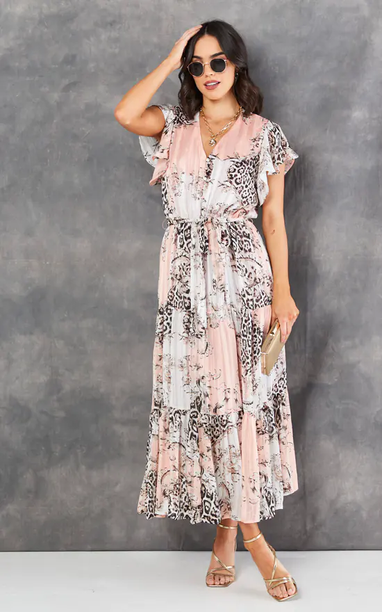 Turn heads in this leopard print midi dress! With short sleeves, button detail and belt, this gorgeous flowing dress will make you feel great. Wear with heels or wedges.