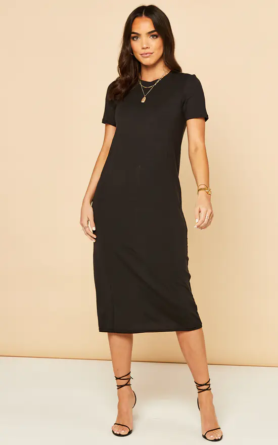 Comfortable and casual, this black t-shirt style dress is a weekend wardrobe staple. Wear yours with trainers for a cool off-duty look.
