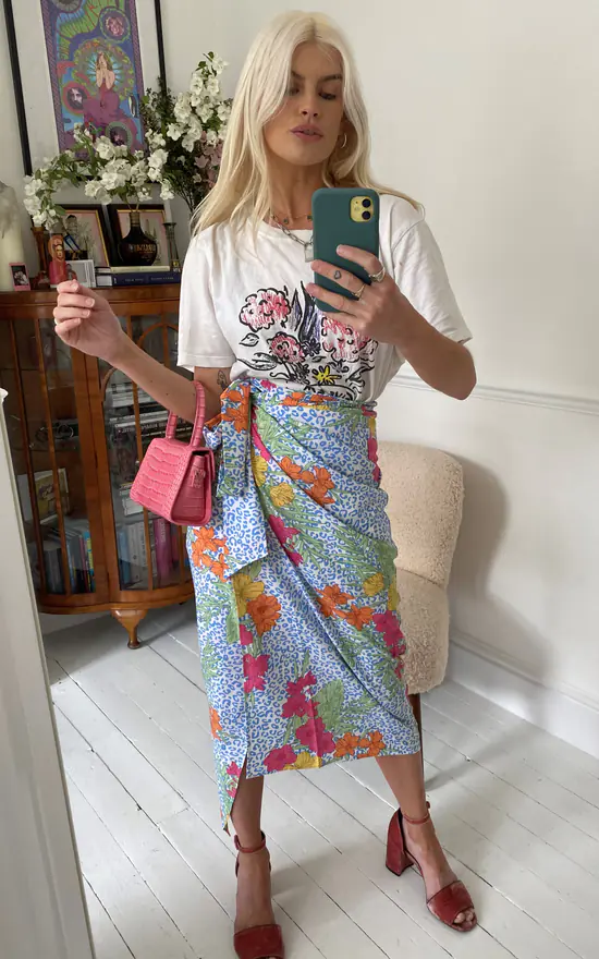 This gorgeous wrap skirt by D. Anna is a must have piece exclusively to Silkfred. Combining our most popular delicate leopard prints and rich, bright floral patterns to create a striking, unique and fresh look to this newly designed wrap skirt in multi colours; featuring a luxe silky satin fabrics and feminine silhouette, this versatile shape can take you from day to night for any occasion.