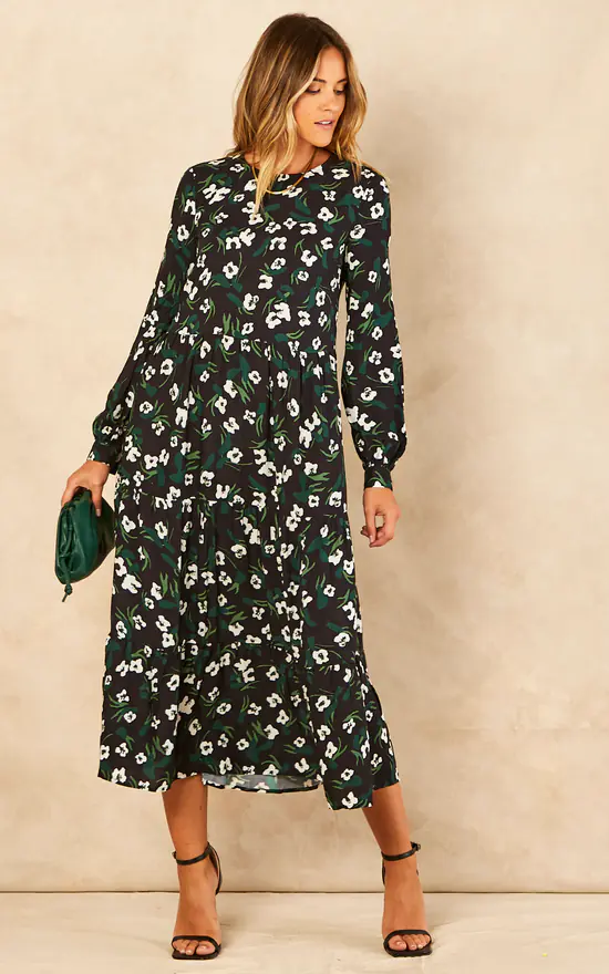 Comfortable and classy – this floral print smock dress is keeping you chic all Autumn/Winter.